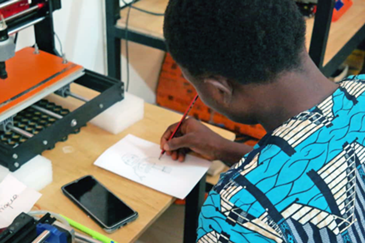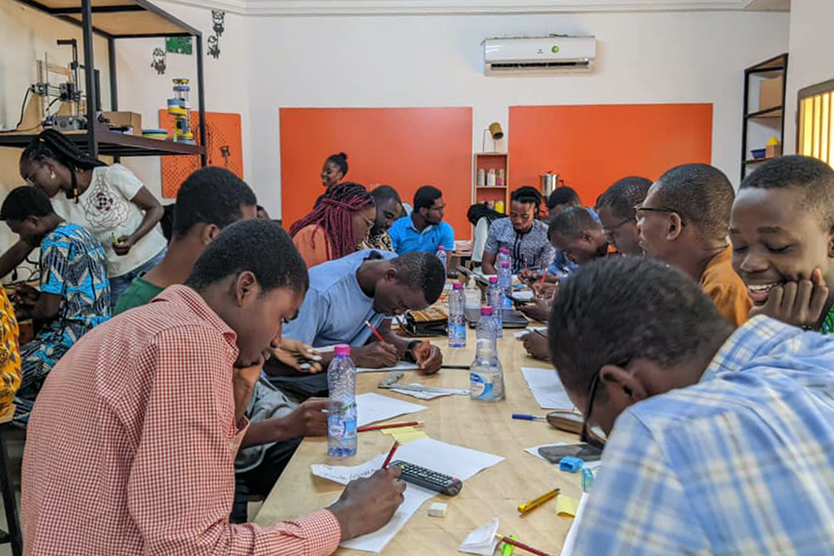 Au Senfablab, les habitués du fablab ont improvisé une démonstration du “jerry” à l’expert sollicité sur la langue qui n’avait pas connaissance de cet objet - ce qui a permis d’en faciliter la traduction !