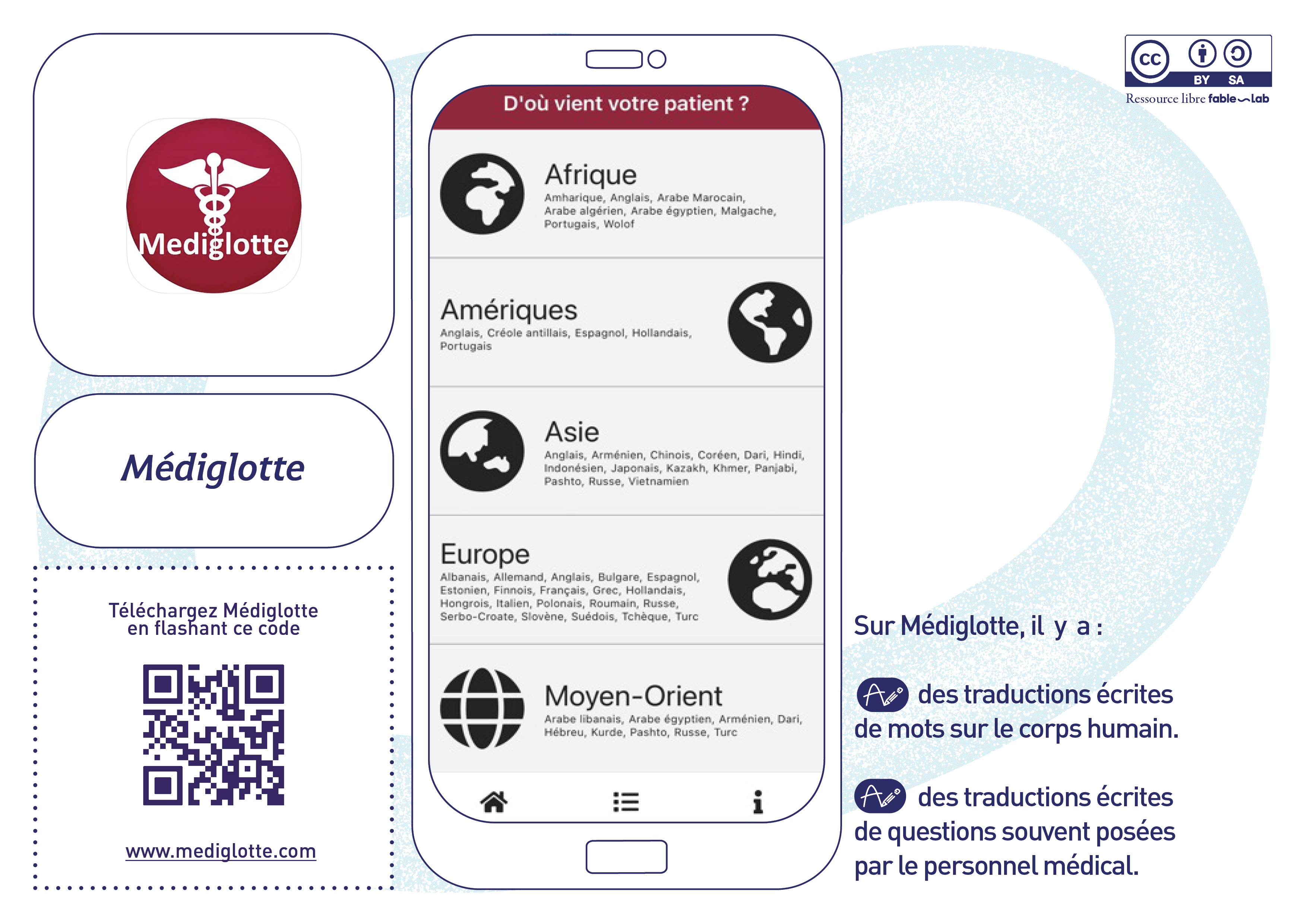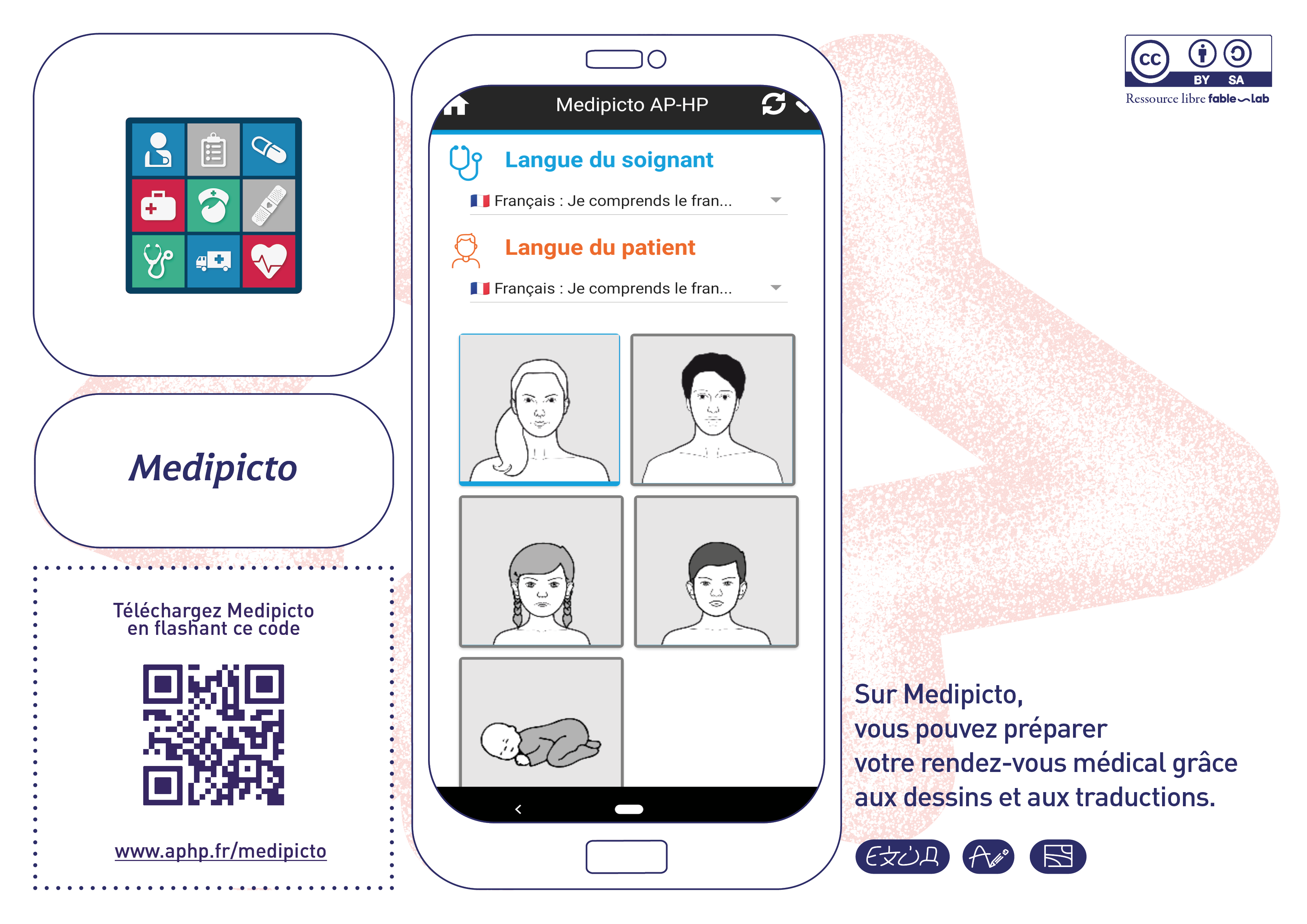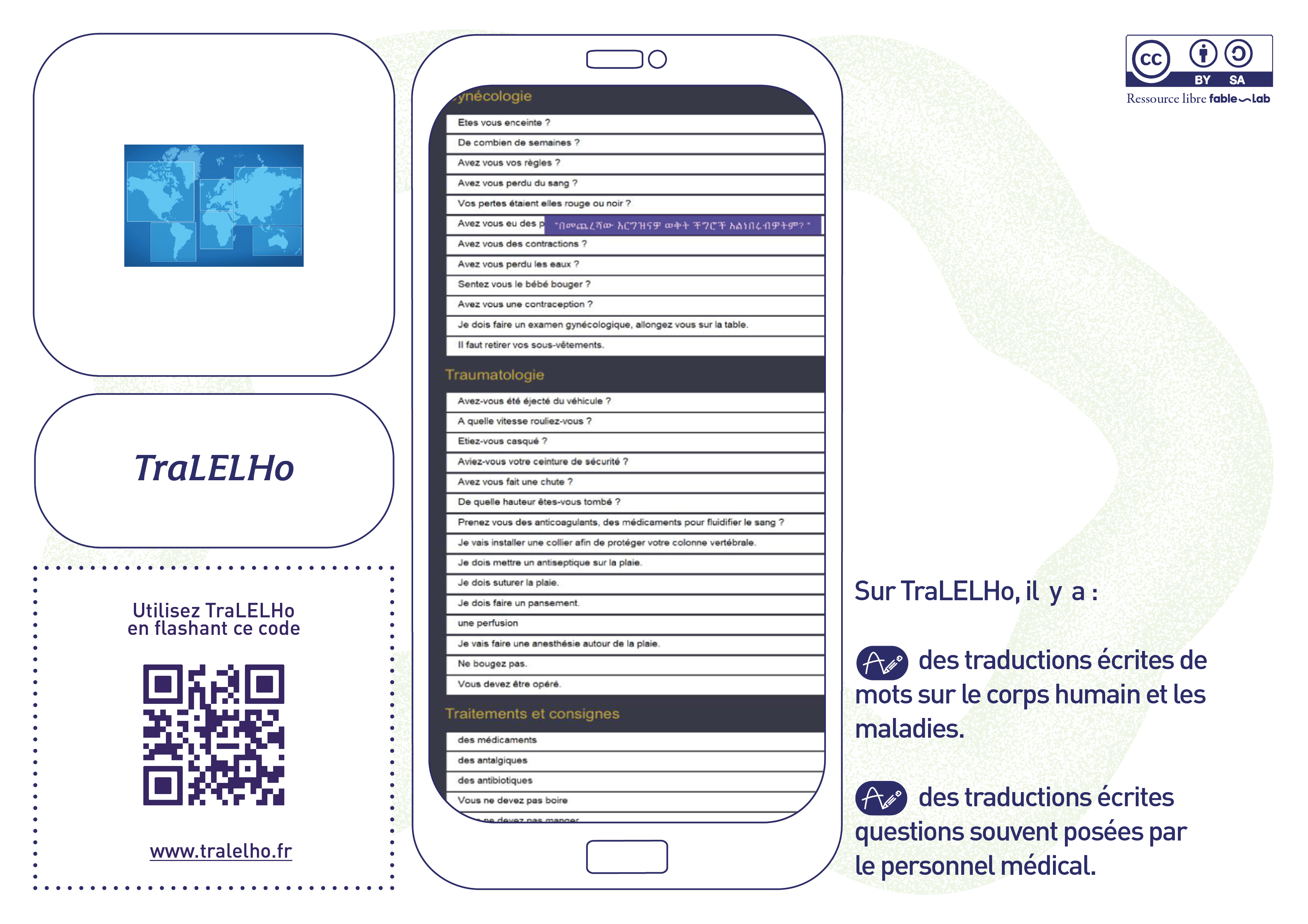 Nous avions sélectionné dès 2022, les outils gratuits et complémentaires pouvant être utilisés au quotidien par des femmes allophones dans leur accès aux soins. Les langues sont nombreuses et les traductions qualitatives : le site web TraLELHo, les applications mobiles Medipicto et Mediglotte ainsi que l’outil web et mobile TraducMed. L’imagier Sen-Mo Santé des femmes de fable-Lab a également été présenté pendant ces ateliers.